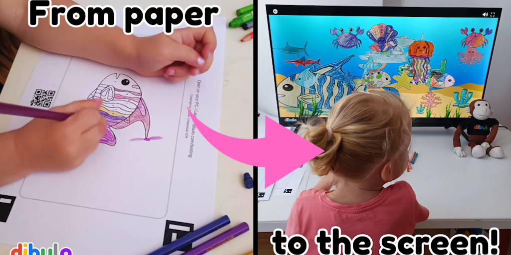 From paper to the screen: Dibulo offers interactive coloring templates, which can be brought to life on any device. We cater to families, day cares, schools and other events with groups of kids. Do mo
