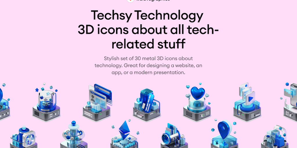Techsy Technology - 30 metal 3D icons about technology | Product Hunt