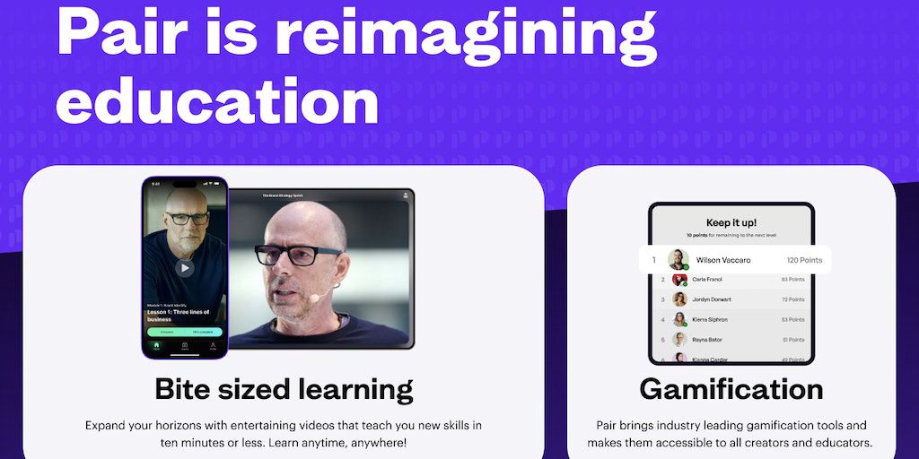 Pair is a course platform that makes learning anything as addicting as watching a Tiktok. We make courses you'll actually finish by focusing on bite sized content and gamification.