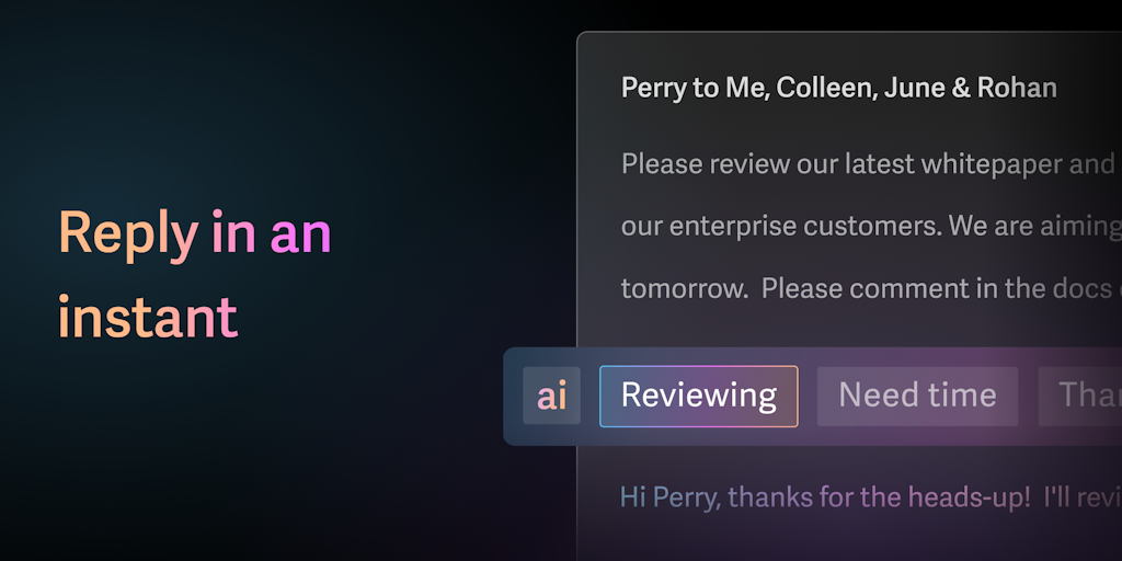 Imagine an inbox where every email has a draft reply. Where every email has a 1-line summary. Where you can turn an idea into a fully written email. Where you can improve your writing, fix your gramma