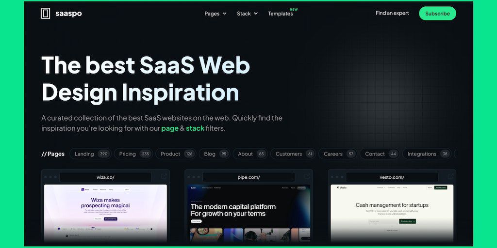 A curated collection of the best SaaS websites on the web. Sort by page type (e.g. pricing) to quickly find the inspiration you're looking for. New designs added daily. Free forever.