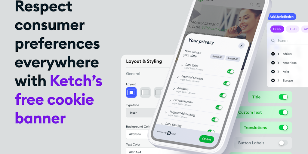 Consumer facing companies need to comply with CCPA, GDPR and other data privacy regulations. Ketch Free makes it easy: start collecting consent in 5 minutes. Create an account, add your Ketch tag to t