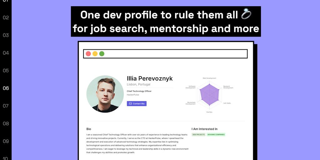 Bring together your GitHub, Stack Overflow, and LinkedIn profiles into a single HackerPulse dev profile. Perfect for job applications and networking, HackerPulse profile gives a complete picture of yo