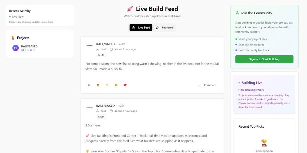 HALF/BAKED: A live-building social platform. | Product Hunt