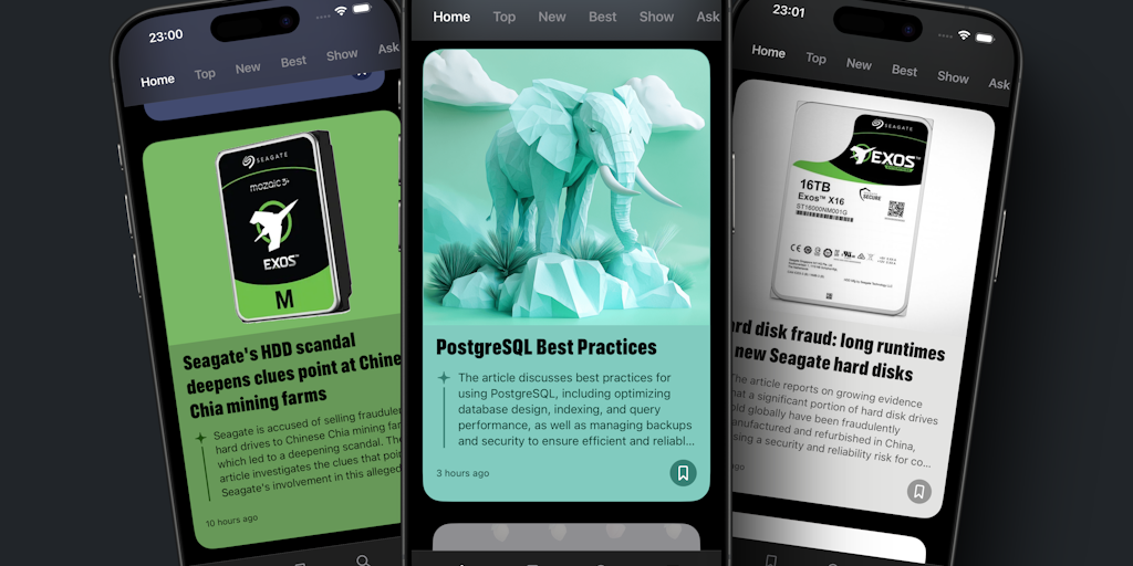 Meet your new favourite way to browse Hacker News (HN) – a sleek, modern reader built for tech enthusiasts. Stay on top of everything in tech, coding, and AI with push notifications, summaries, bookma