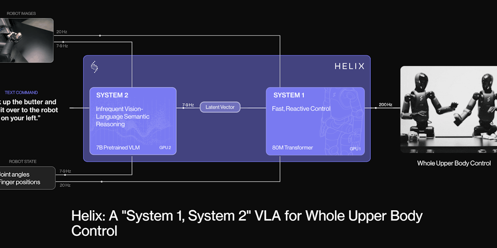 Helix, from Figure AI, is a Vision-Language-Action model for full upper-body humanoid control. Zero-shot generalization to new objects & tasks. Runs on embedded GPUs.