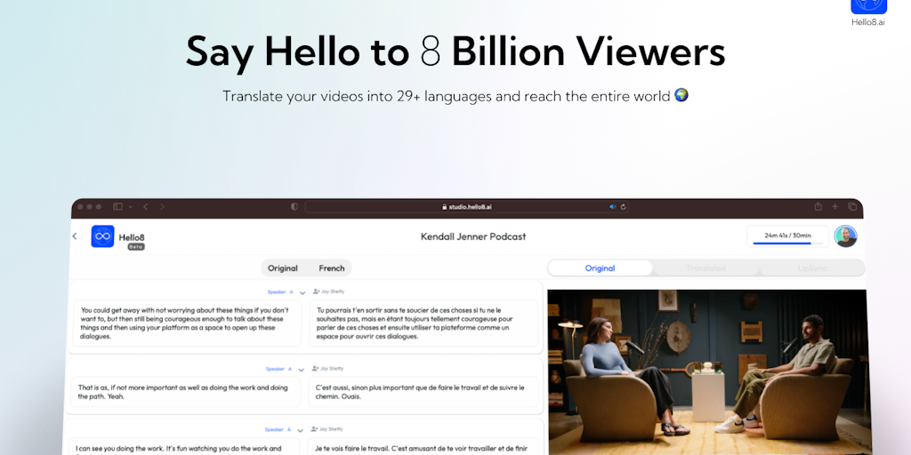 Hello8 - Say Hello to 8 Billion Viewers with AI Video translation | Product Hunt