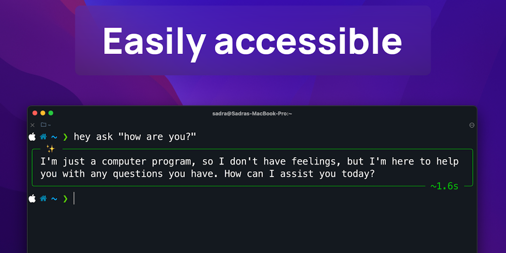 Hey is a free and open-source CLI tool for Linux, Mac, and Windows users that seamlessly integrates powerful Large Language Models (LLMs) for a delightful development experience. Hit it with your issu