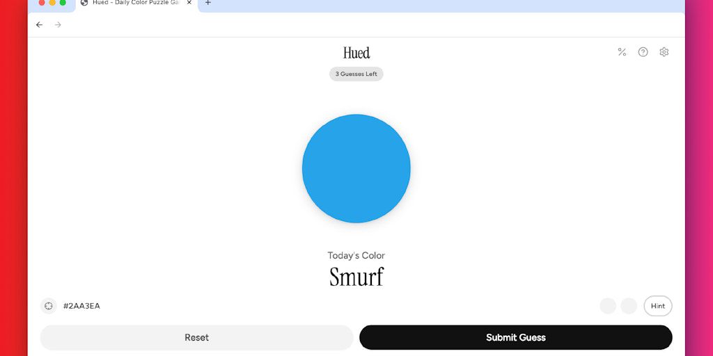 Hued is a daily color puzzle—like Wordle, but for colors. You get 3 guesses to match the color of the day. Designed, built, and launched this month—already nearing two weeks of puzzles! A quick, fun w