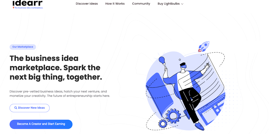 Unlock your next big idea! Idearr is a free, gamified marketplace for buying and selling expert-vetted business ideas. Earn "Lightbulbs" to access business ideas, plans, prototypes, and more. Join thi
