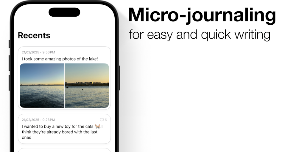 Write short entries, make threads with them, search them by meaning, and revisit them through intelligent recommendations related to your recent writing — all that with on-device, non-generative AI. i