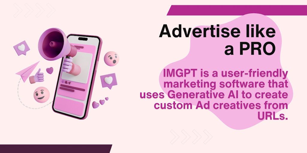 IMGPT is a user-friendly marketing software that uses Generative AI to create custom Ad creatives for products and services. All you need is a URL to your page.