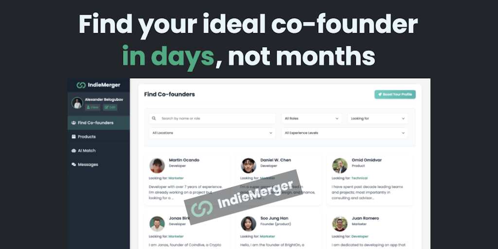 IndieMerger - Find your ideal co-founder in days | Product Hunt