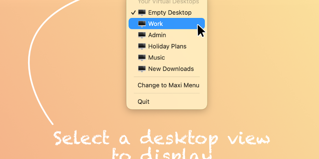 InfiniDesk lets you switch between project-specific desktops on your Mac, each showing different folders, files, and shortcuts. File-safe and private, it runs as a lightweight app in your Mac menu bar