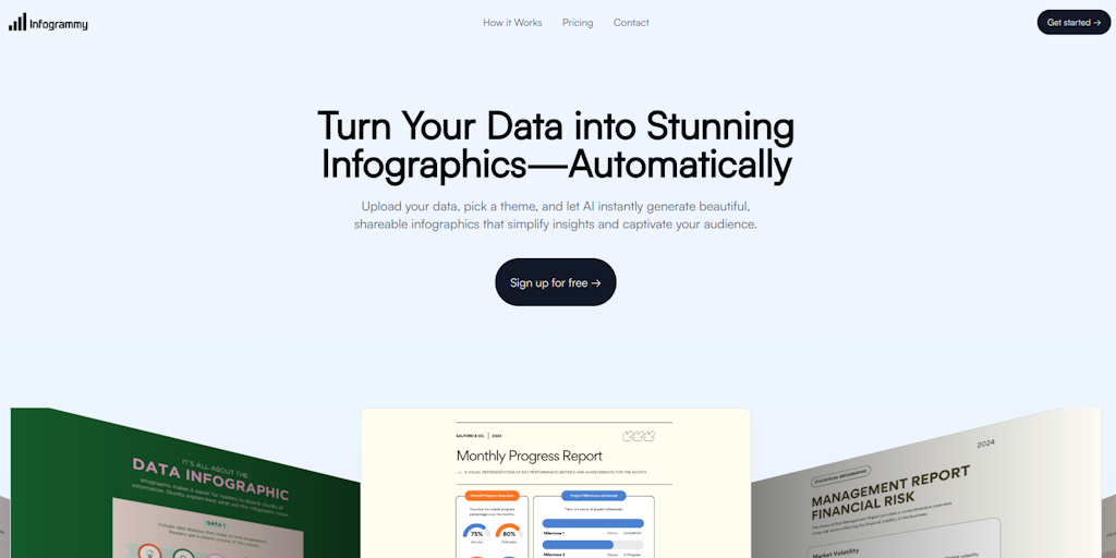 Transform your data into stunning, shareable infographics in seconds with Infogrammy. Harness the power of AI for effortless data visualization, storytelling, and business insights.