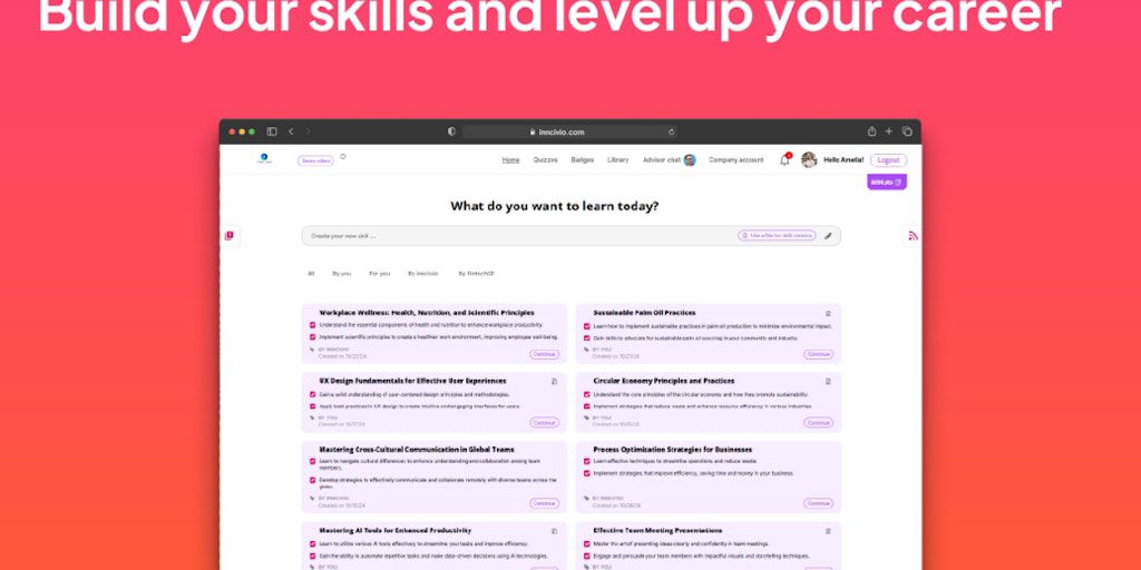 Develop your skills and keep your team engaged with inncivio's Al-powered micro-learning platform. It combines spaced repetition with fully personalized learning paths to deliver faster and more effec