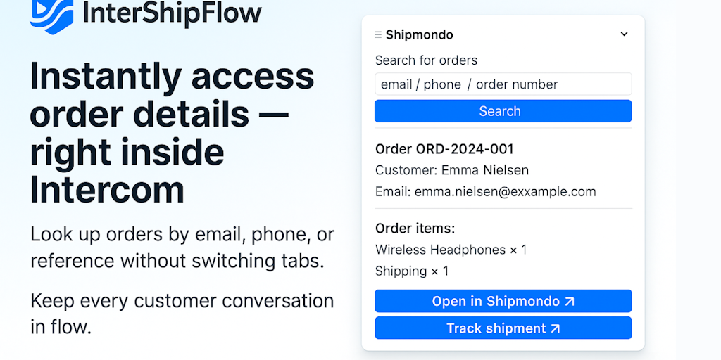 InterShipFlow: Shipmondo orders & shipment tracking directly in Intercom | Product Hunt
