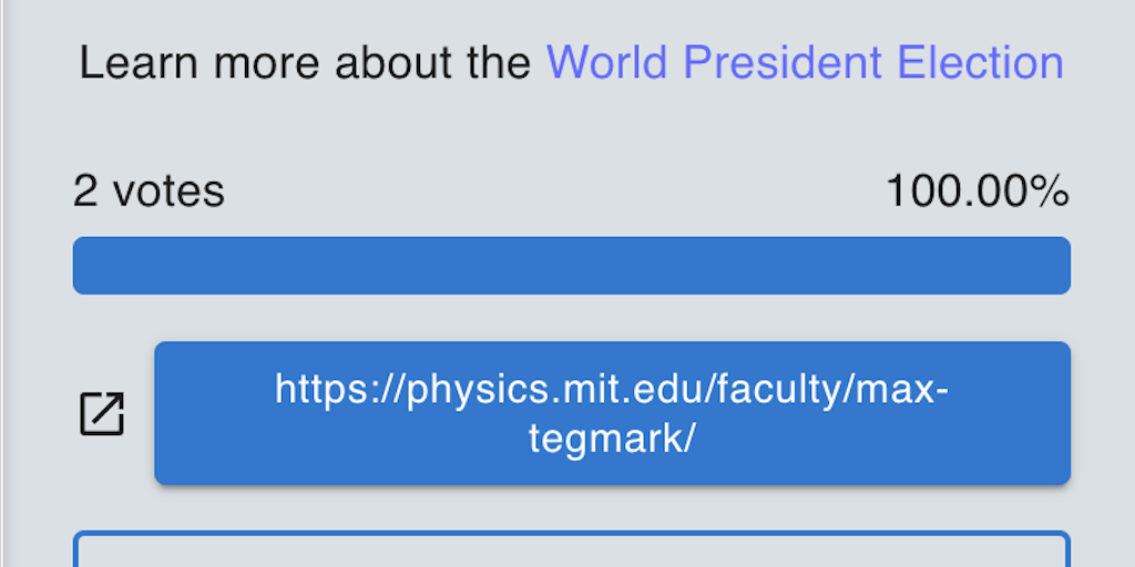 It's a survey platform where each IP-Address gets 1 vote per week. Express your opinions globally with one click. Who do you think should be world president?