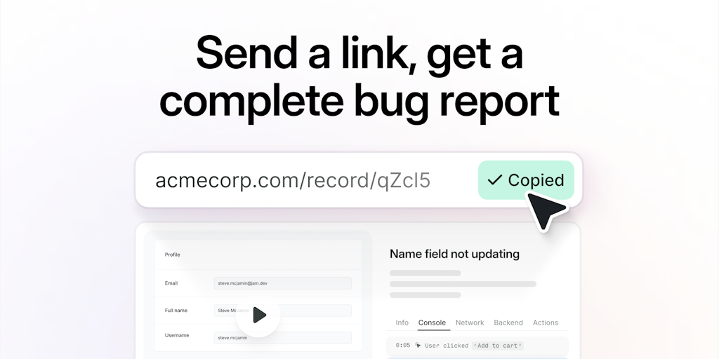 Record exactly what went wrong and share it instantly with your dev team. No more back-and-forth emails, unnecessary meeting, or confusing screenshots. Jam auto-captures technical logs, and creates de