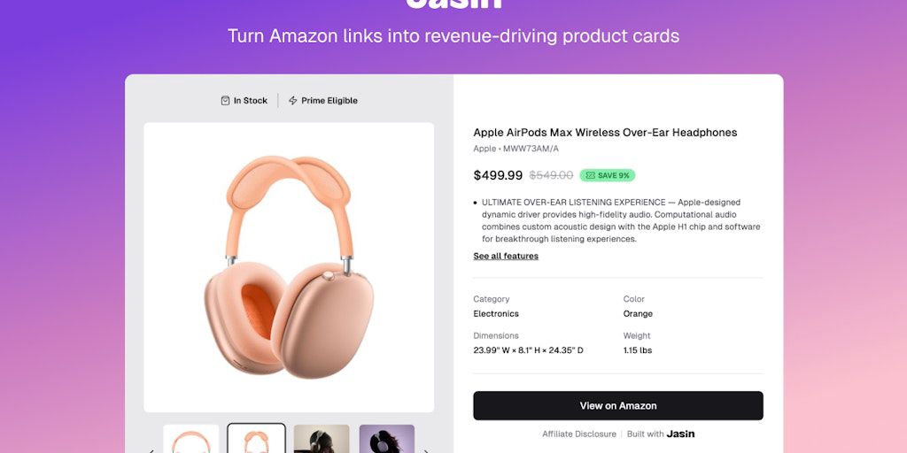 Jasin: Turn Amazon links into revenue-driving product cards | Product Hunt
