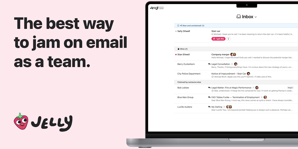 Jelly is a new shared inbox for your team’s shared email addresses. It’s simple, intuitive, and actually affordable. Stop stepping on toes and losing track of important messages, and start jamming on