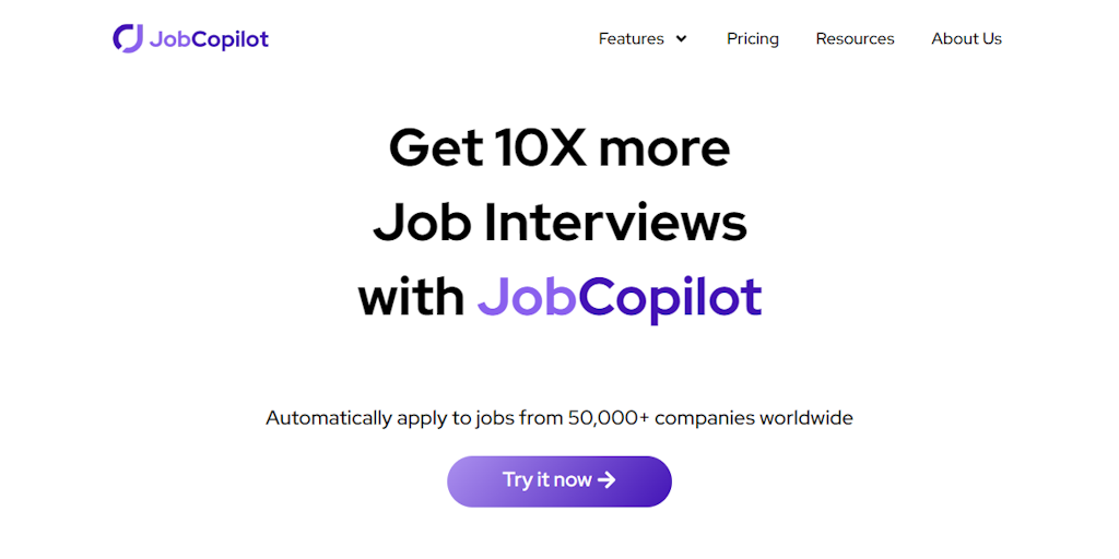 JobCopilot helps you get more job interviews by automating job applications. Your AI JobCopilot auto-applies up to 1,500 relevant jobs each month, from over 50,000 companies worldwide.