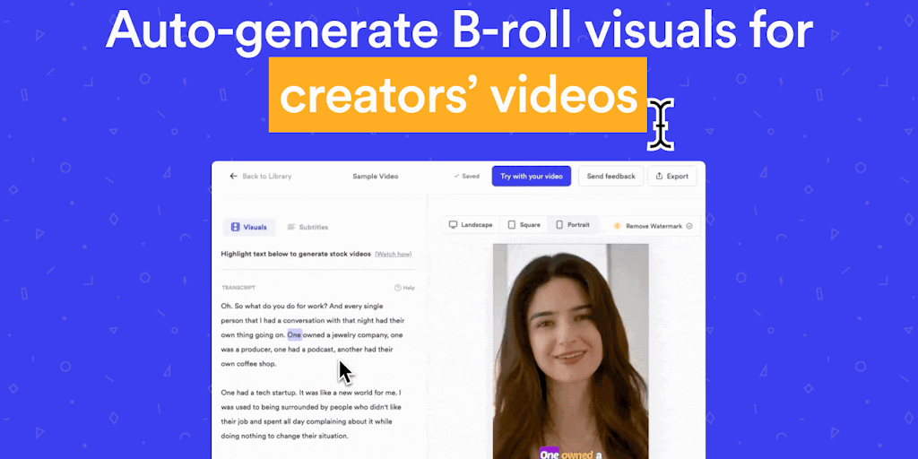 Jupitrr AI auto-generates B-roll visuals, such as stock videos, Google Images, GIFs, animated subtitles and more, for content marketing videos. 10x faster for content creators to edit videos. ✨