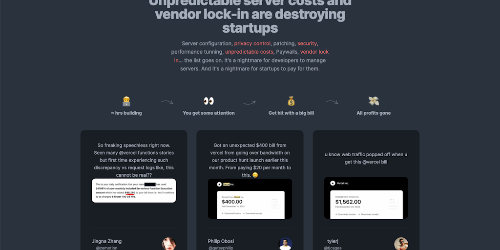 Launch from your machine to your VPS for as little as $4 with our automation template. Experience complete freedom and cost control from development to production. Scale as you grow!