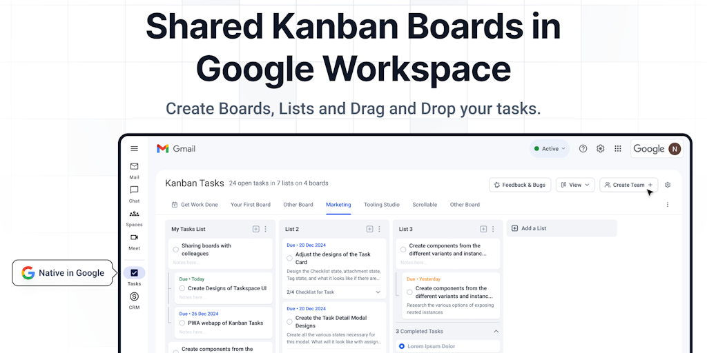 Collaborate with your team on shared Kanban boards inside Google Workspace. Assign tasks, set due dates, add attachments. Easy task management with drag-and-drop functionality and real-time sync, all