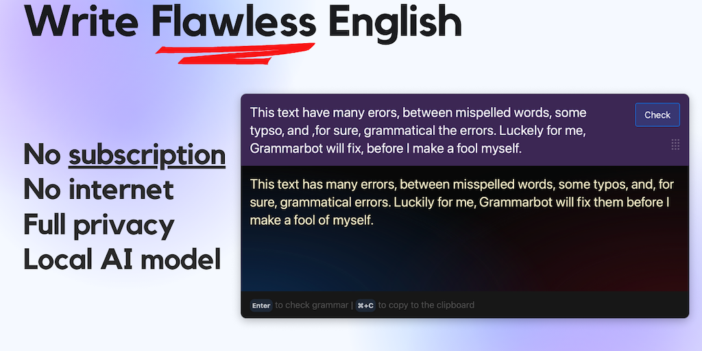 GrammarBot - Write flawless English with AI, no subscriptions, offline | Product Hunt