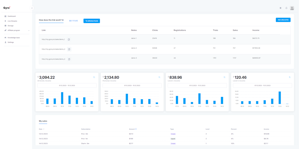 Gyre is a tool for 24/7 live streaming of pre-recorded content that may significantly boost your channel by attracting more views, increasing channel watch time, enhancing audience engagement, and gen