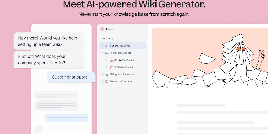 AI-powered tool to generate the tailor-made structure for your wiki or a whole knowledge base by simply responding to a few questions. Start from choosing pre-set options of team or company wiki, or j