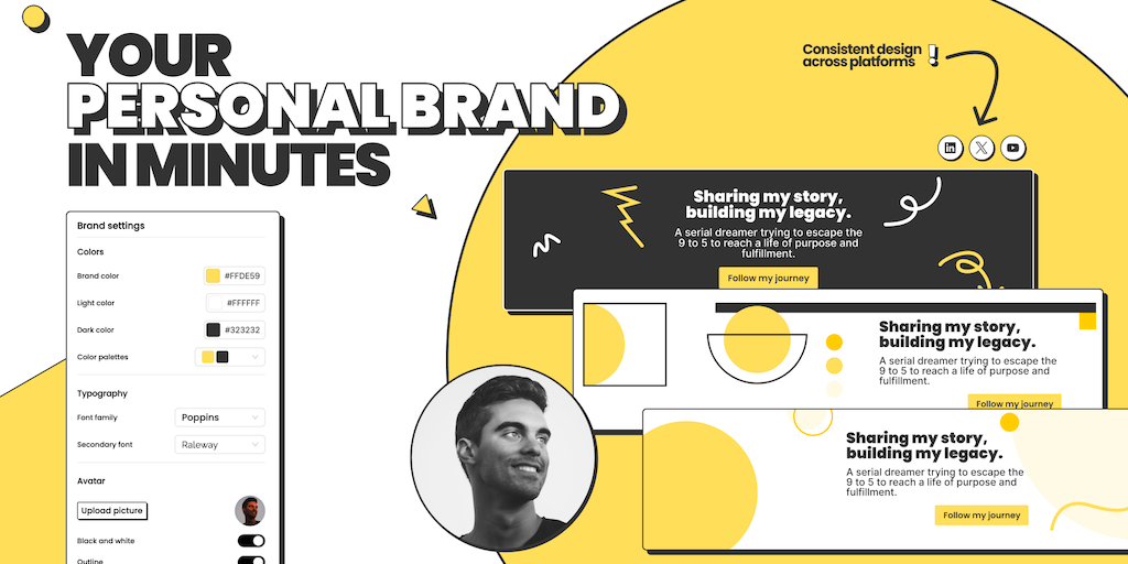 An easy-to-use platform to design your personal brand in minutes and start creating on-brand visual content to stand out and elevate your online presence.
