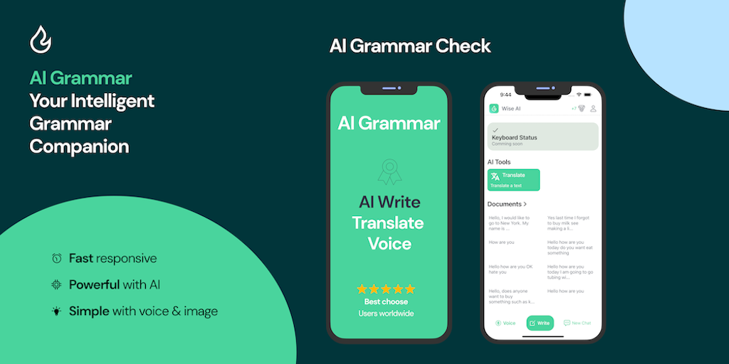 Introducing "Write Best with AI Grammar & Tools"! Unleash the power of AI for flawless grammar, voice recording, and seamless translation with voice and camera support in over 20 languages.
