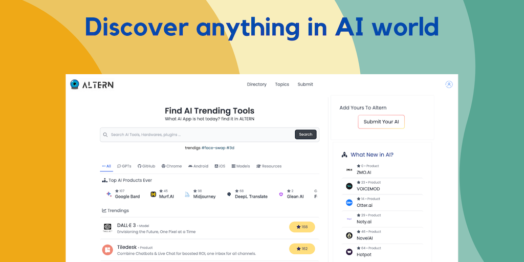 Discover a world of AI tools, models, datasets, and hardware. Enjoy free submissions for AI products, explore curated AI lists tailored to your interests, and create a professional AI profile.