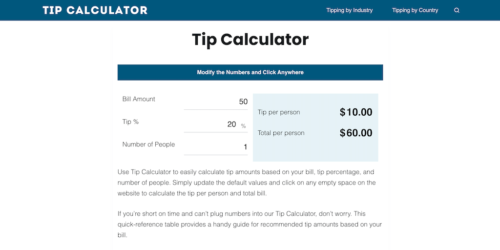 Tip Calculator - Calculate Your Tips & Split Your Bill in 2 Clicks | Product Hunt