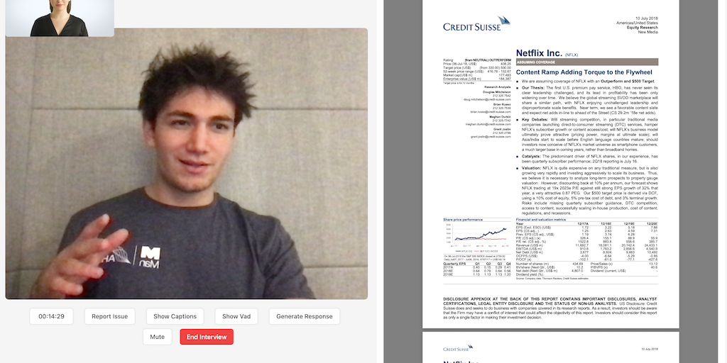 📹 Get on video calls with ultrarealistic AI interviewers (<2s latency, video avatars) 👀 They look, speak, and act like real interviewers in real time 🗓️ Practice at your convenience, any time, anywher