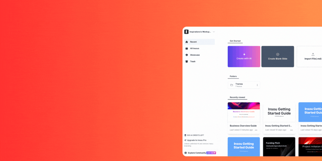Insou is an AI-driven platform that emphasizes content over design. Craft impactful presentations by focusing on your story, supported by our advanced tools, markdown integration, and efficient workfl