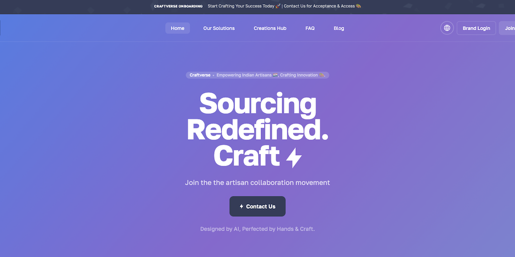 Craftverse is your ultimate B2B platform, connecting artisans, manufacturers, and brands across India. Explore AI-powered tools, a curated marketplace, eco-friendly packaging, and more.