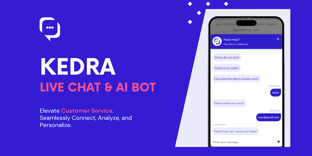 Boost sales and support with Kedra: all-in-one solution. Seamlessly integrate live chat and AI bot into Shopify admin. Turn visitors into fans with customization and analytics. Get a 24/7 AI assistant