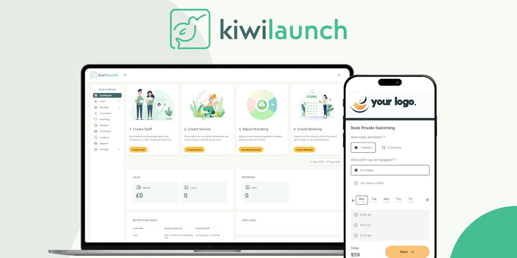 kiwilaunch for seamless online booking integration on your website. Ideal for service businesses including practitioners, home services, salons, course providers, and more. Deceptively simple to start
