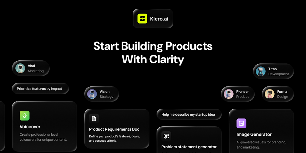 Klero helps startup teams and founders move from idea to execution fast and with clarity. With specialized AI assistants and 20+ ready-to-use docs, you can plan, build, and launch smarter - without th