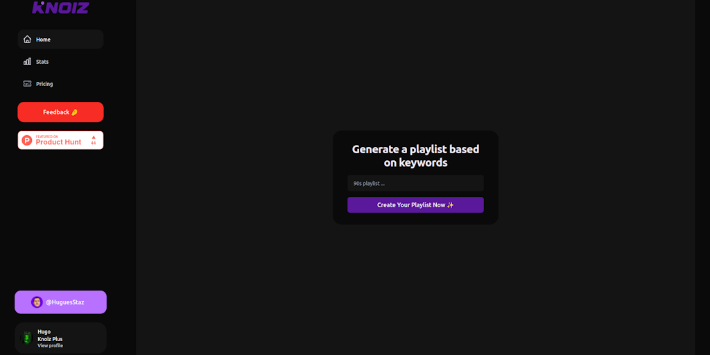 Knoiz - Create your next Spotify Playlist, in seconds | Product Hunt