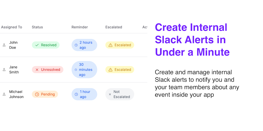 Create and manage internal Slack notifications to notify you and your team members on important events inside your app