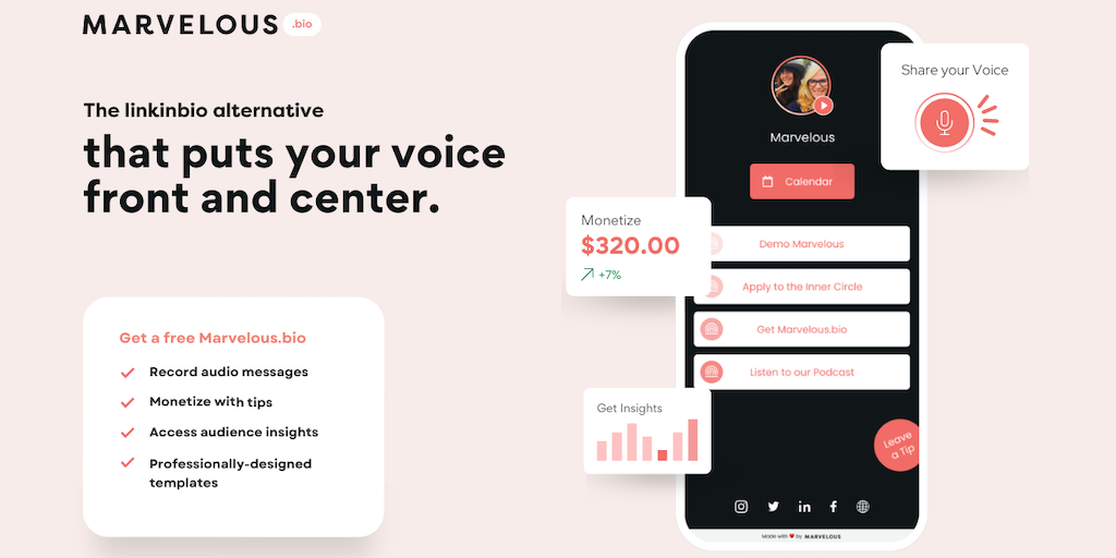 Marvelous.bio - A free link-in-bio tool putting your voice front and center | Product Hunt
