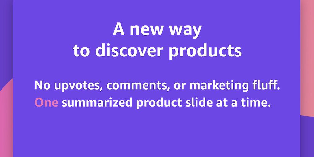 If you like to discover new products but don't want to be influenced by upvotes or comments, we have the solution. No fluff and no algorithmic sorted list. Discover 1 product at a time, and swipe to n