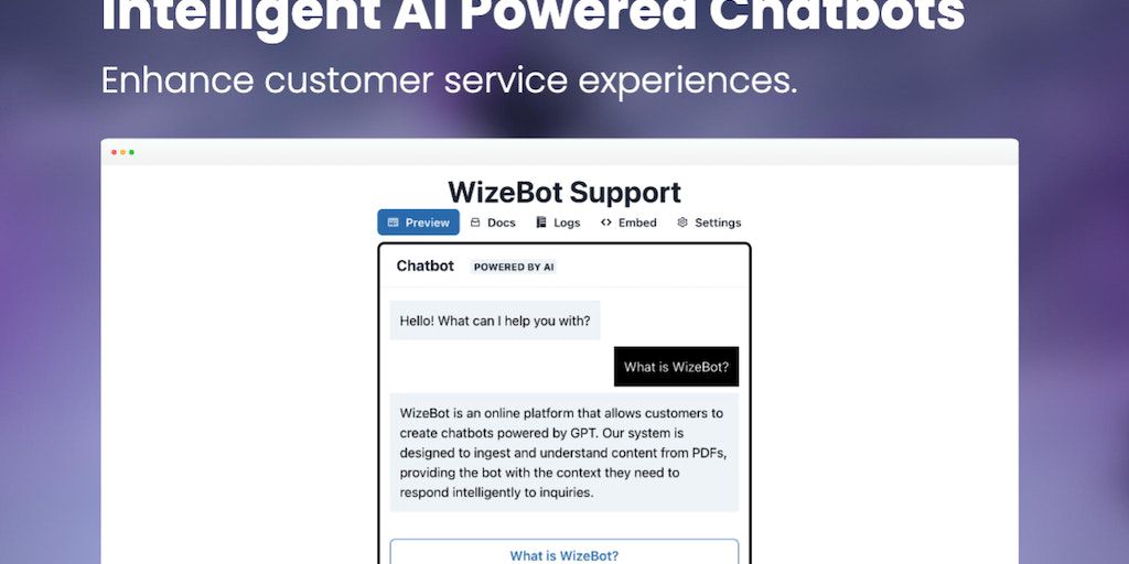 WizeBot allows businesses to create customer service chatbots powered by GPT. Our system is designed to ingest and understand content from PDFs, providing the bots with the context they need to respon