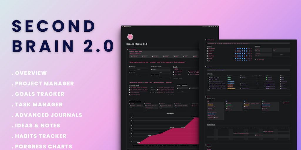 Second Brain Template 2.0 is a powerful knowledge management system. With its intuitive interface, it lets you organize your entire life with ease. It's flexible and customizable, making it perfect fo