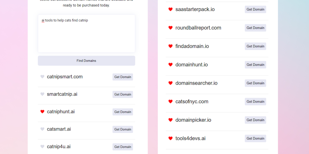 No more searching through taken domains. DomainWoohoo uses AI to seek out awesome domain names that are available and ready to be purchased today.