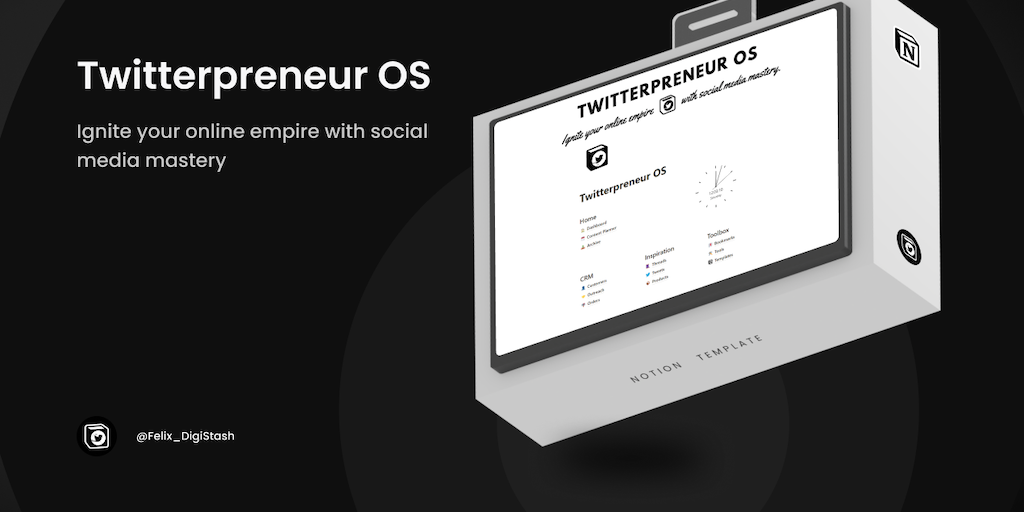 "Empower your Twitterpreneur journey with the all-in-one Twitterpreneur OS. It's a Notion-Template featuring - Content planner - Tweet inspirations - CRM..much more. Dominate Twitter, boost creativity